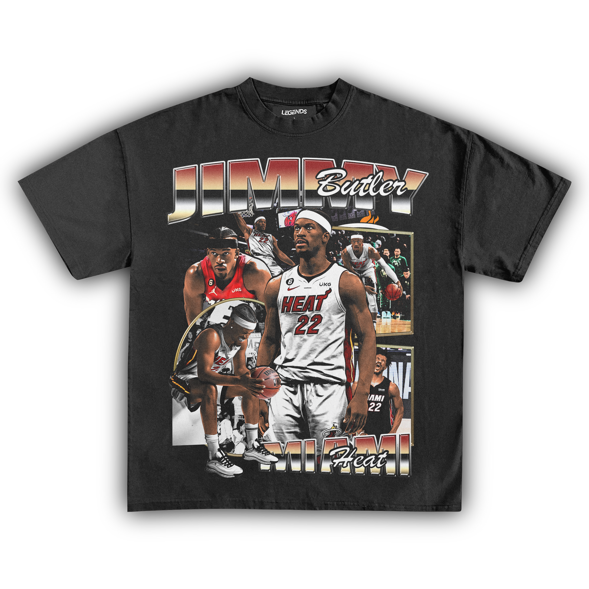 So if you're all about rocking the freshest threads, repping your roots, and standing tall with the legends, then peep that heavyweight vintage Jimmy Butler tee – the ultimate street style statement that sets you apart from the crowd. This ain't just a tee; it's a declaration that you're rollin' with a player who's rewritten the game.