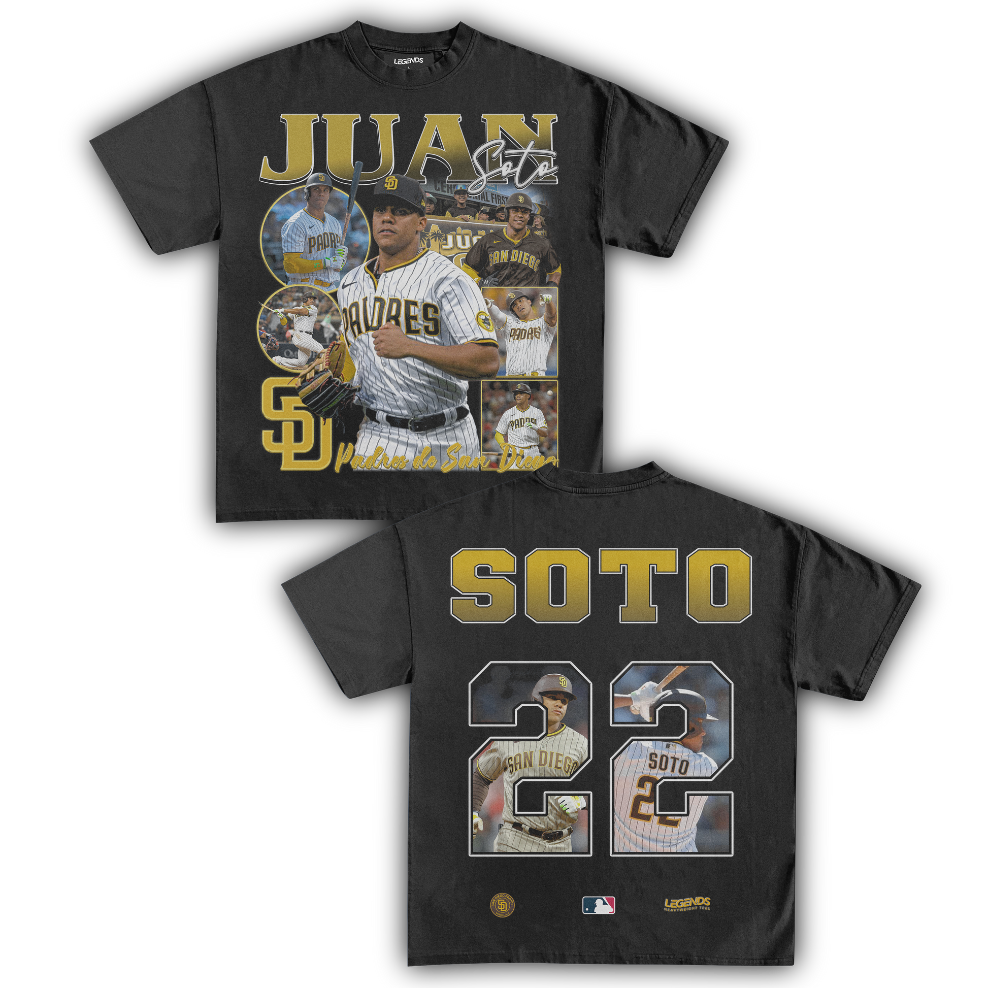Made from that tough-as-nails fabric that'll stand the test of time, just like Soto's legacy in the game. This ain't no ordinary t-shirt, fam. It's the symbol of elevated street style, and you better believe it'll turn heads.