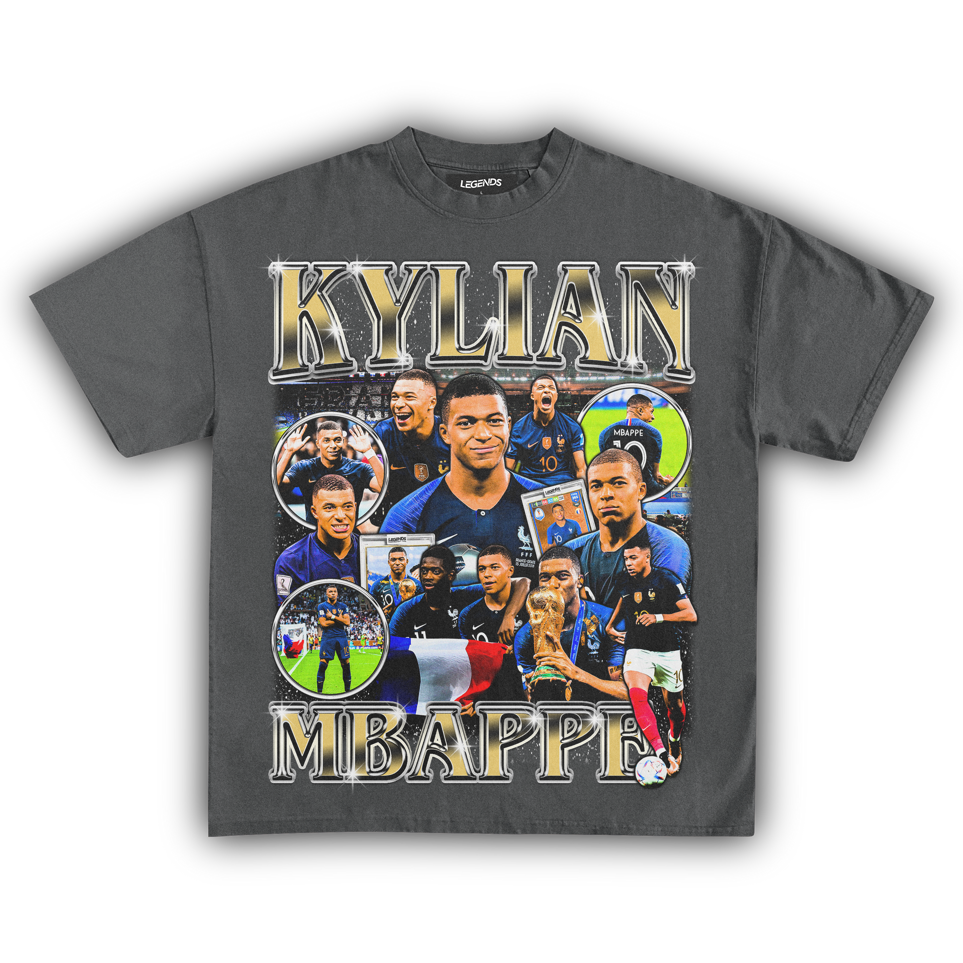 Dive into the electrifying world of Kylian Mbappé with our vintage designer luxury heavyweight style t-shirt. Capturing the essence of this young phenomenon, we've translated his dynamism and jaw-dropping speed into a piece of wearable art.