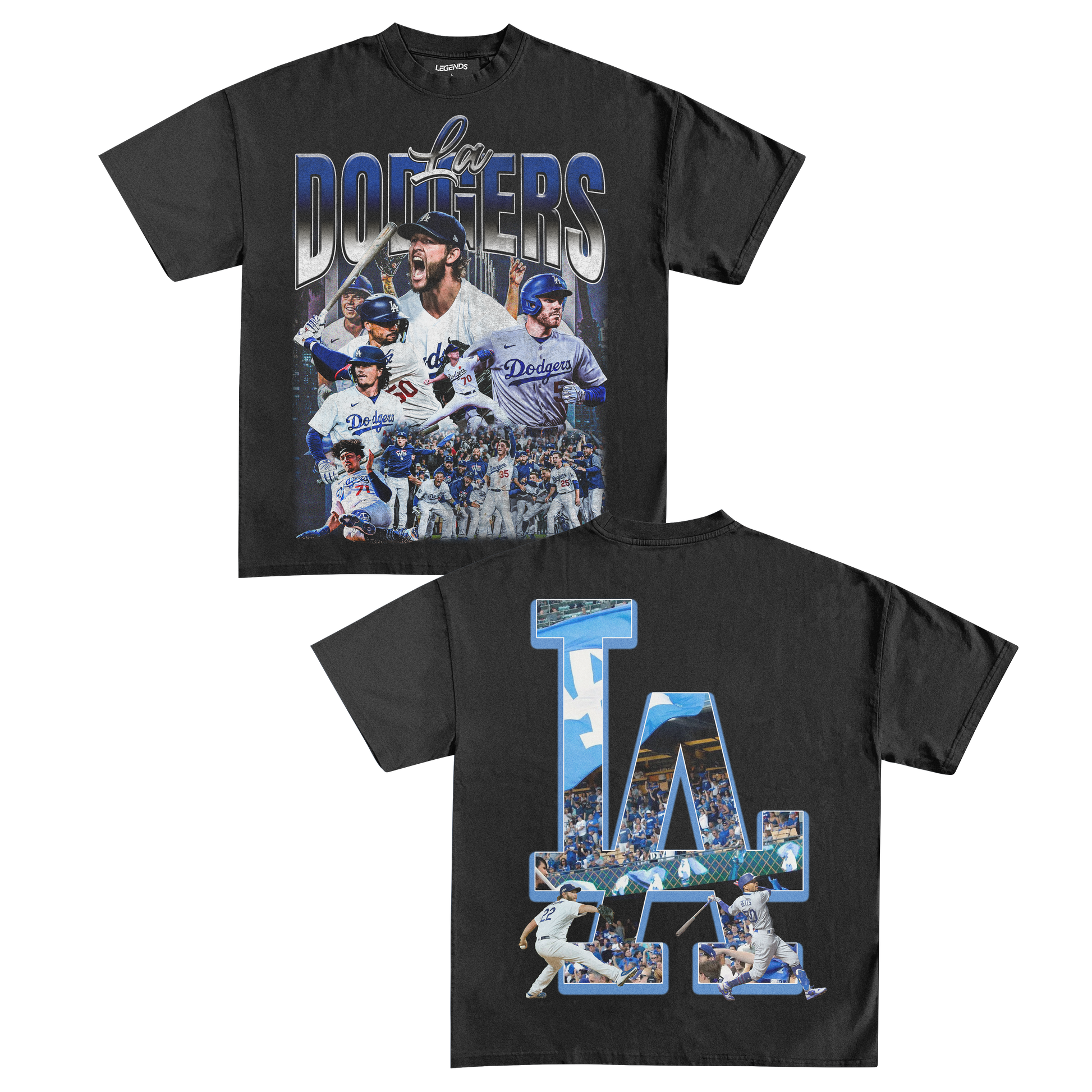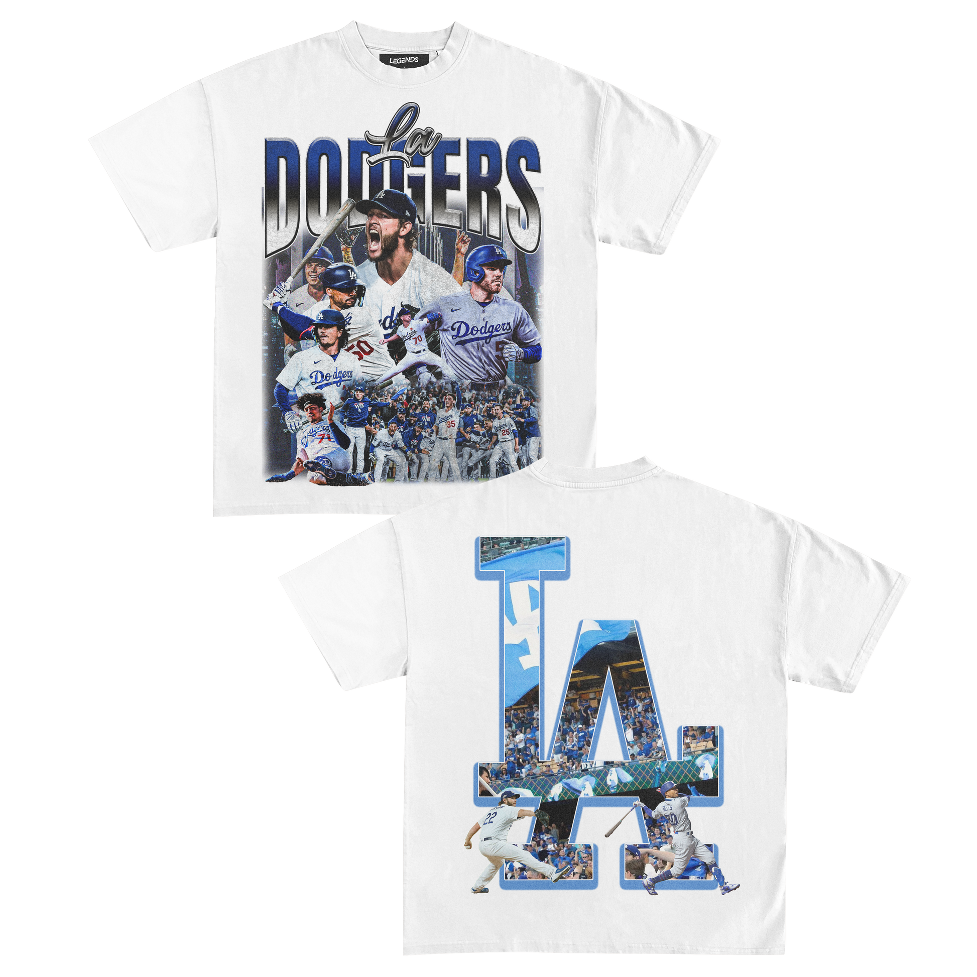 So whether you're hittin' the streets of LA or cheerin' from the bleachers, let your style shine with this heavyweight tee that celebrates the Dodgers' championship history. LA Dodgers, a symbol of grit, passion, and the undeniable spirit of Los Angeles, and this tee is your ticket to join the winning team!