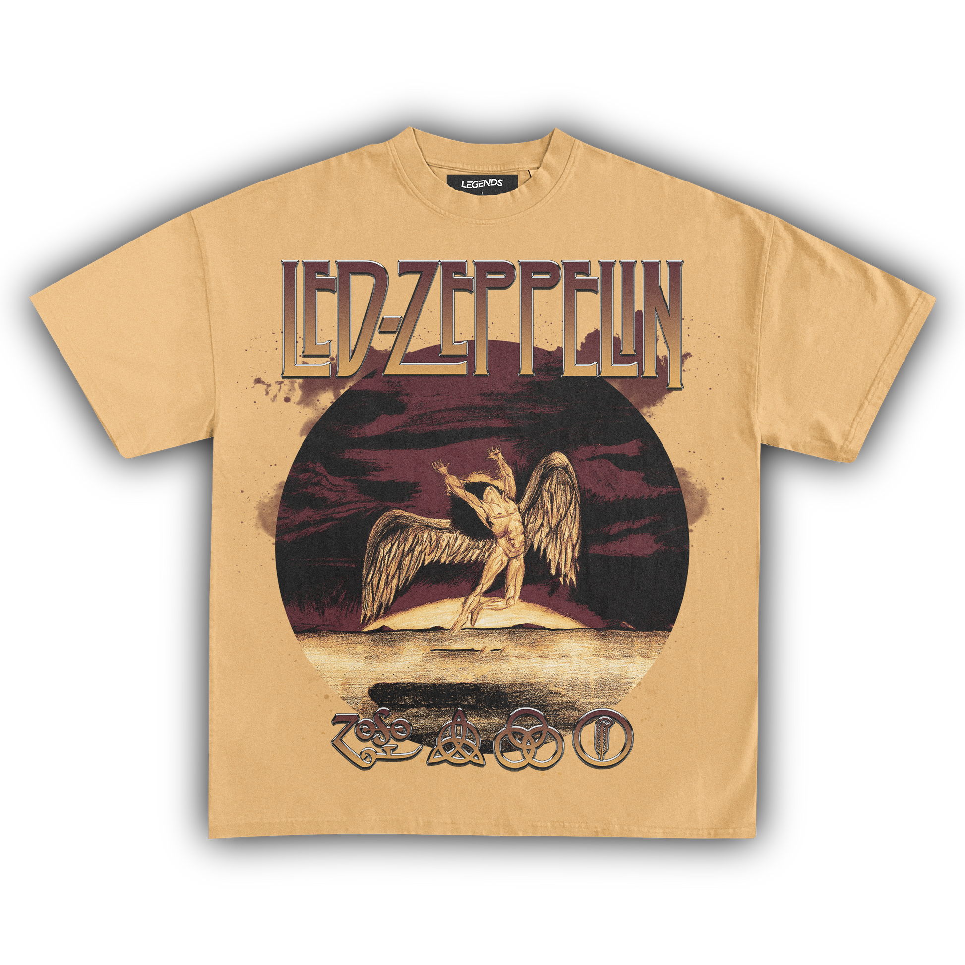 Get ready to rock the retro vibes with our Led Zeppelin Tee. This heavyweight garment-dyed tee, crafted from 100% ring-spun cotton, channels the essence of vintage cool. The pre-shrunk fabric and vintage-inspired print deliver a worn-in aesthetic, reinforced with twill-taped shoulder-to-shoulder construction and double-needle stitching for durability. It's the ultimate blend of music legacy and streetwear style.