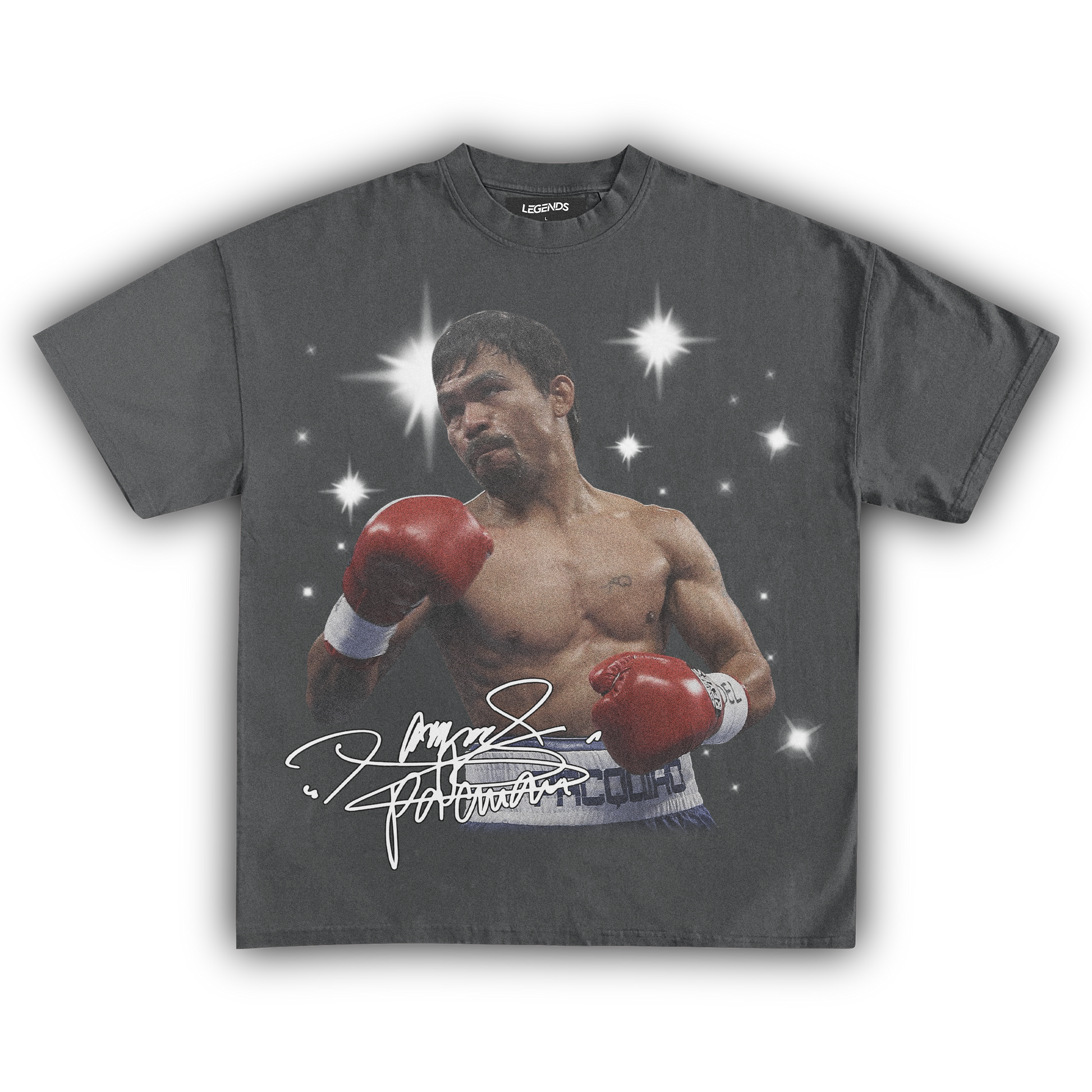 Celebrate the boxing prowess of Manny Pacquiao with this timeless tee, a nod to his legendary strength and finesse in the ring. Just like Pacquiao's unyielding determination, this garment resonates with strength and style. Blending vintage aesthetics with a modern street edge, it encapsulates the indomitable spirit of the boxing icon. Elevate your streetwear collection with this robust, vintage-inspired tee and honor the legend of Manny Pacquiao.