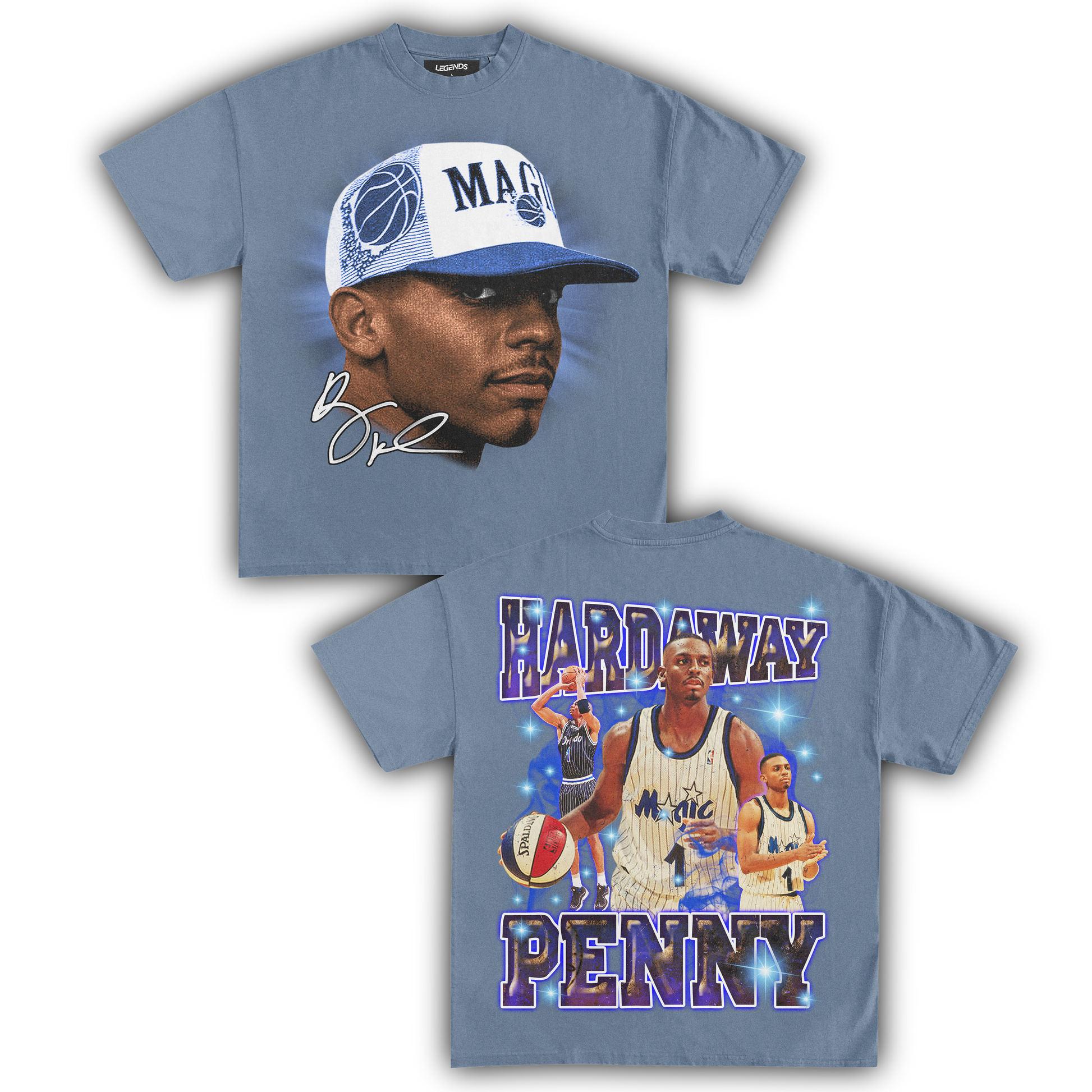 Step up your game with our exclusive vintage Penny Hardaway tee, celebrating the iconic basketball legend. This heavyweight tee pays tribute to Penny's basketball greatness, from his jaw-dropping crossovers to his ill dunks as a member of the Orlando Magic and other NBA teams. Crafted from durable fabric, it symbolizes the enduring impact of Penny's game.