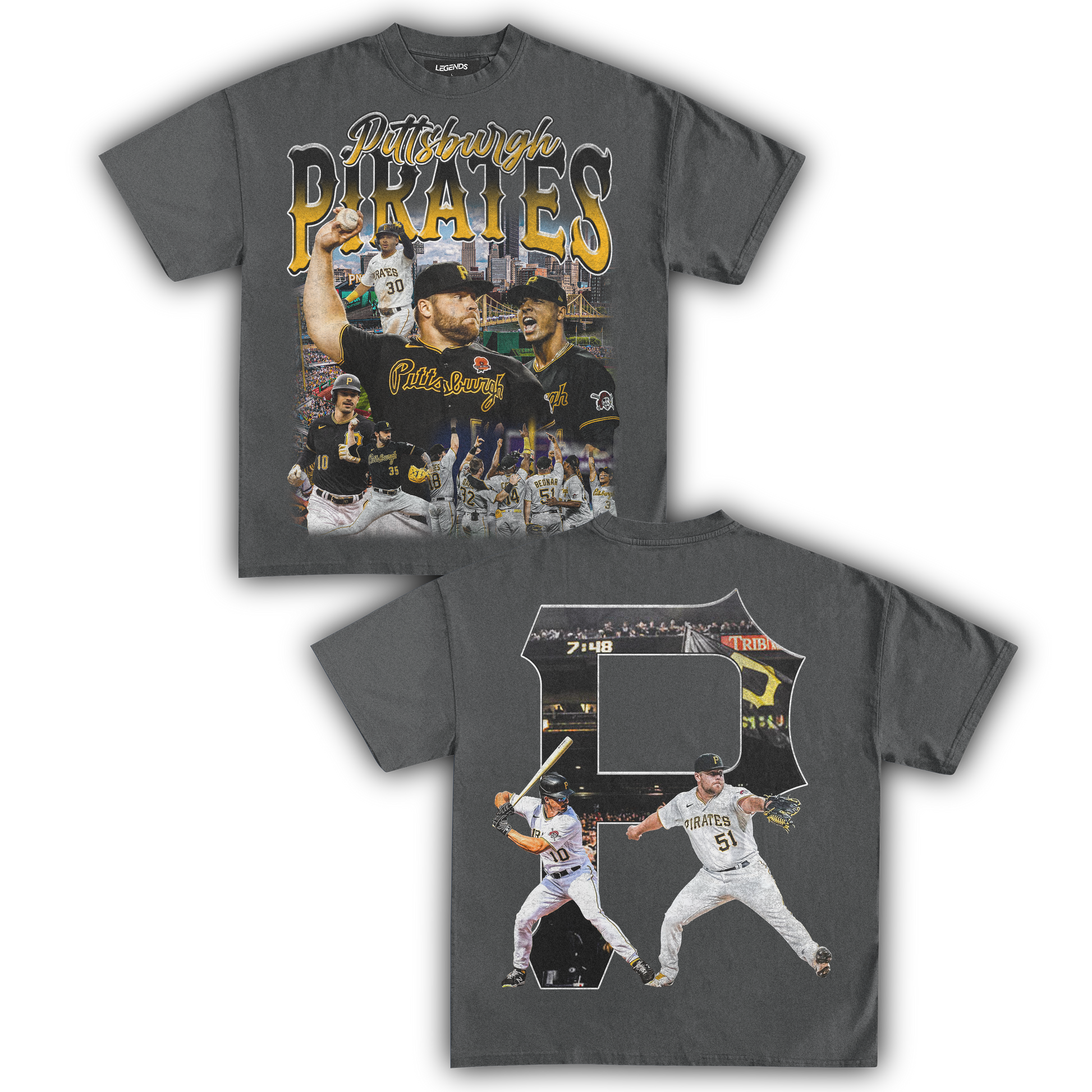 Elevate your street style with the power of the Pirates' legacy, standin' tall with the legends. Show your love for the game and rep the best with this tee that's more than just clothing. It's a symbol of unity, resilience, and the thrill of the game.