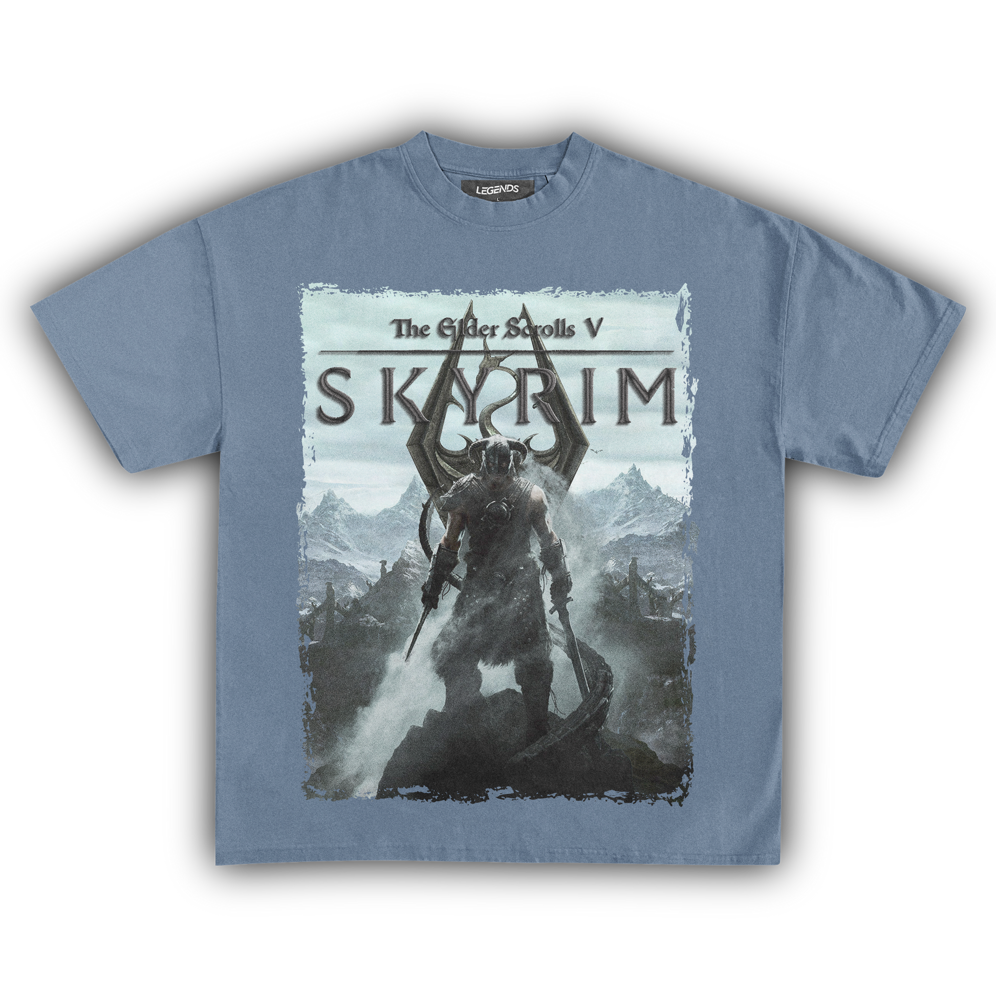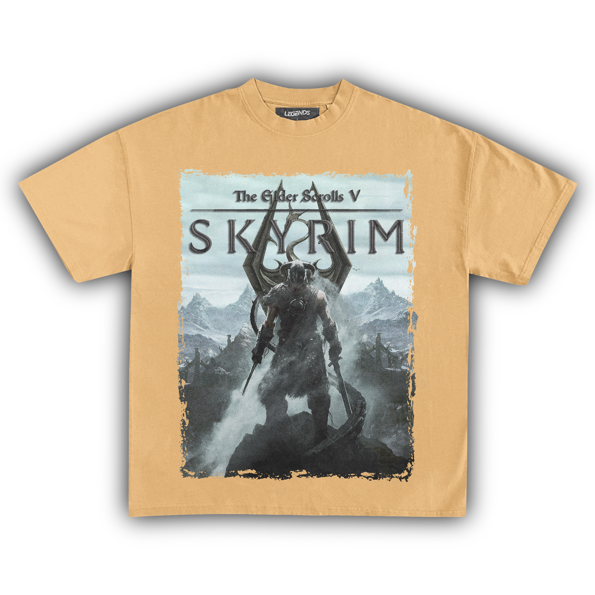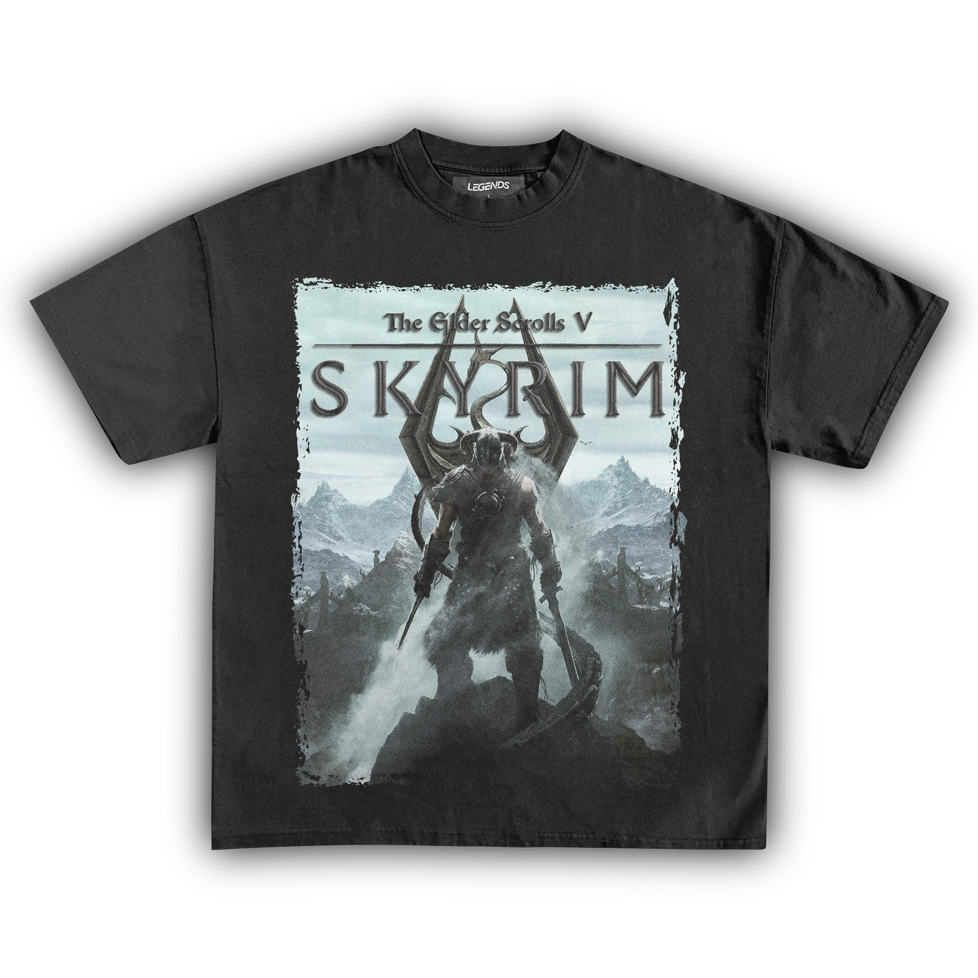 We're talking about a game that's more than a game; it's a whole universe, a life, an epic saga! The Elder Scrolls V: Skyrim. That's right, the high-fantasy, dragon-slaying masterpiece is now immortalized on our legendary 7.5 oz heavyweight tee!
