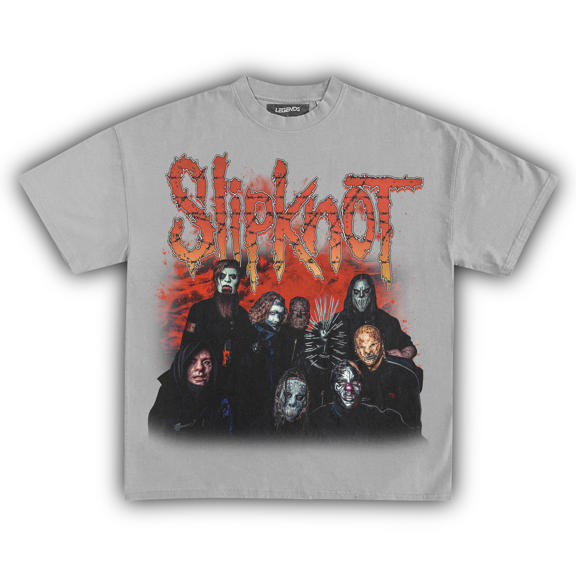 Hey, metal mavens and hardcore fans, take note! You ever find yourself lost in the screams, the riffs, and the raw power that is Slipknot? We've got something for you. Feast your eyes on our latest: the Slipknot Legacy Heavyweight Tee.